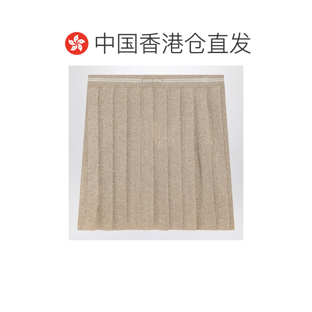 女士 1h可退 缪缪 Miu 金色褶裥卢勒克斯迷你半 香港直邮潮奢