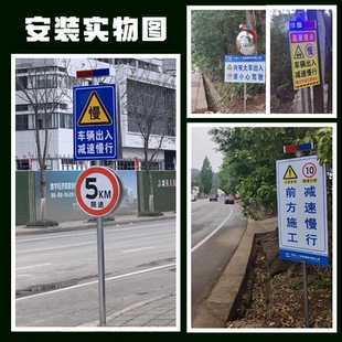 交通标志牌 前方路口施工减速慢行安全警示路牌定制 太阳能爆闪灯