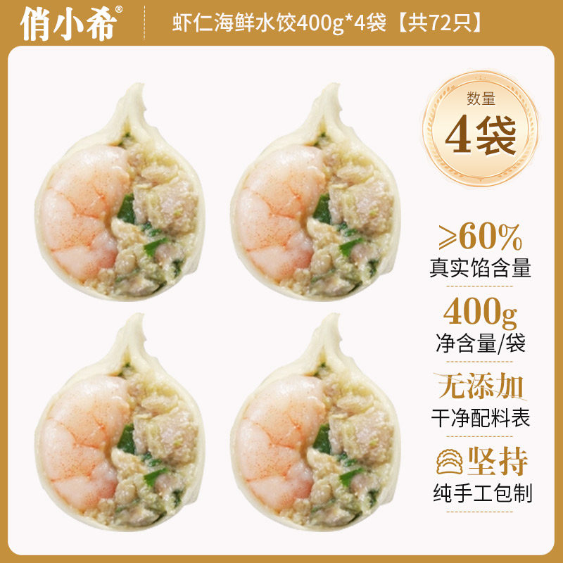 俏小希海鲜虾仁水饺速冻食品虾饺蒸饺煎饺400g 4营养夜宵早餐速食