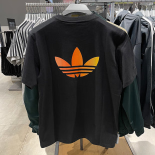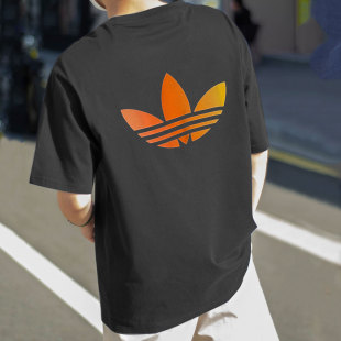 男夏季 美式 新款 半袖 篮球纯棉黑色T恤 宽松大码 阿迪达斯三叶草短袖