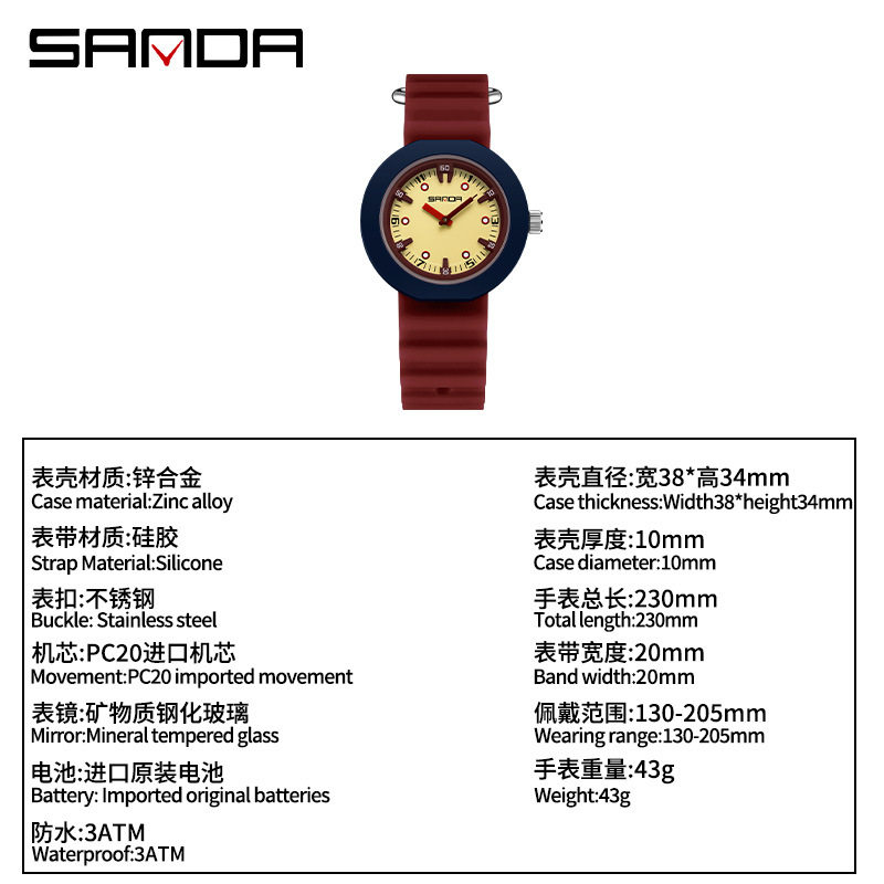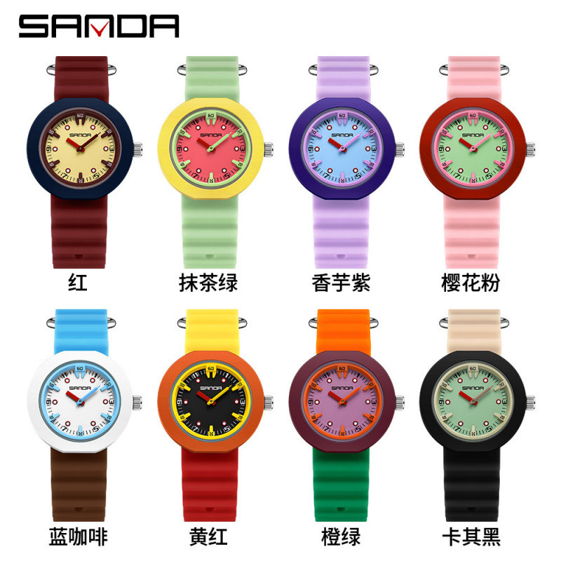 三达新品 学生手表撞色学院风儿童男表女表只看时间防水高颜值腕表