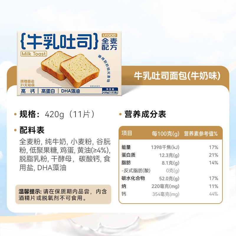 沪上阿姨面包小奶砖吐司面包早餐点心便携装 牛奶香手撕面包代餐
