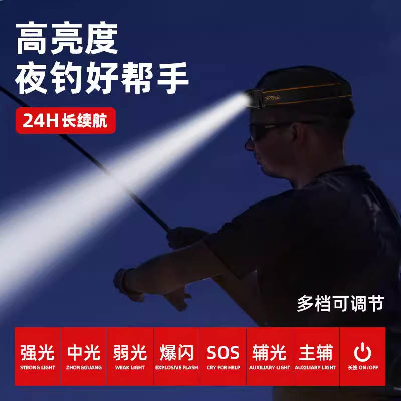 头灯头戴式 强光充电超亮钓鱼专用超长续航锂电手电筒矿灯感应夜钓