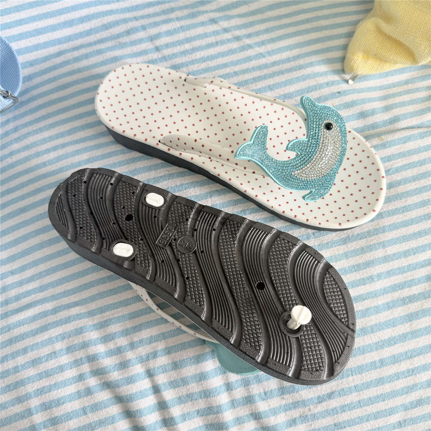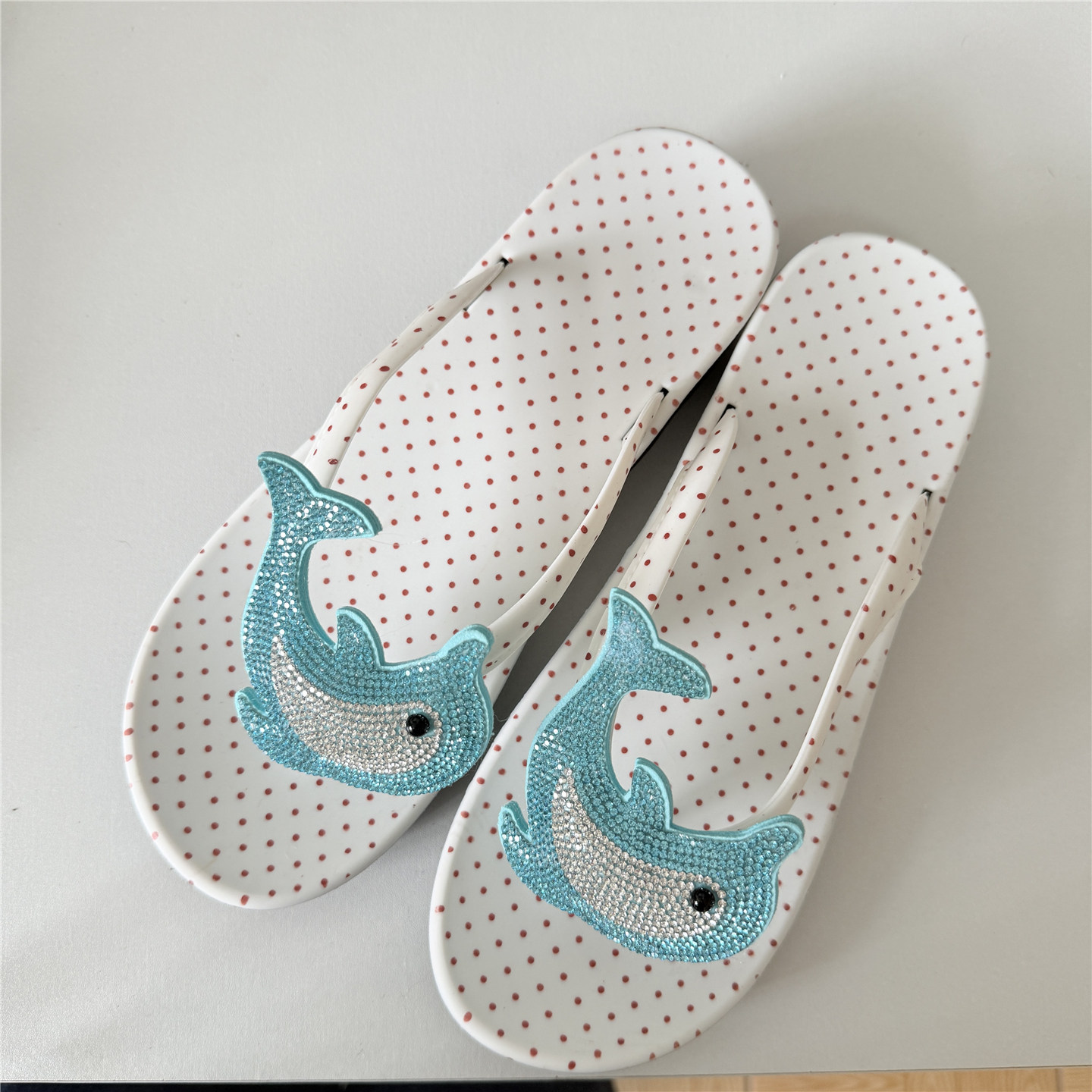 日光欲夹脚拖鞋 显白人字拖 女外穿夏y2k千禧波点闪闪水钻2025新款
