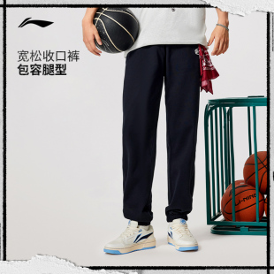 男士 男裤 休闲黑色裤 厚毛圈束脚针织运动裤 子宽松篮球长裤 李宁卫裤