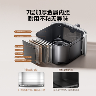 利仁小钢人不锈钢空气炸锅家用0涂层新款 大容量双热源可视电炸锅