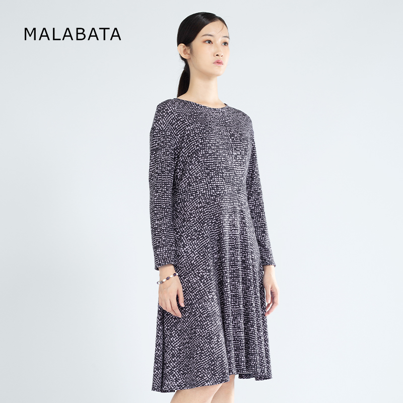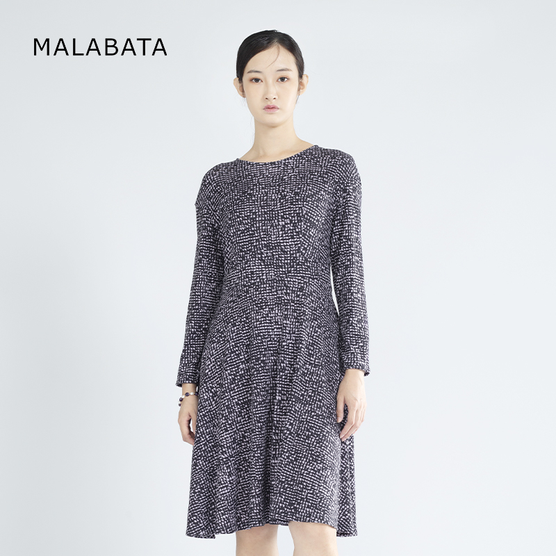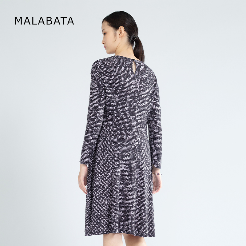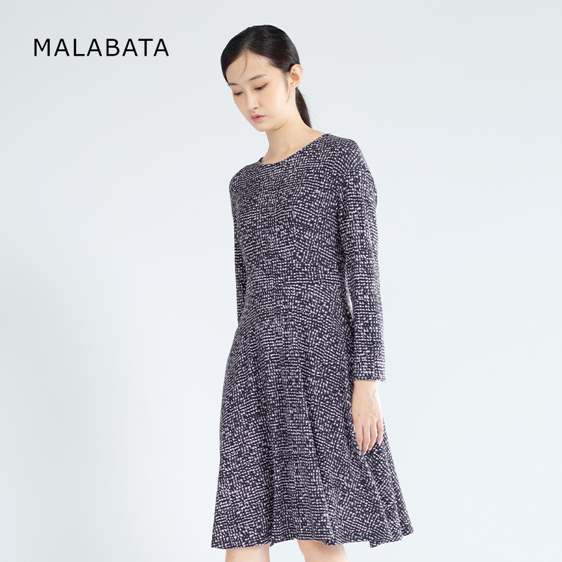 百搭A字裙100羊毛 碎花裙时尚 MALABATA连衣裙女中长款 气质圆领长袖