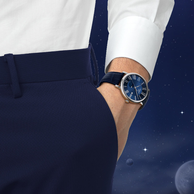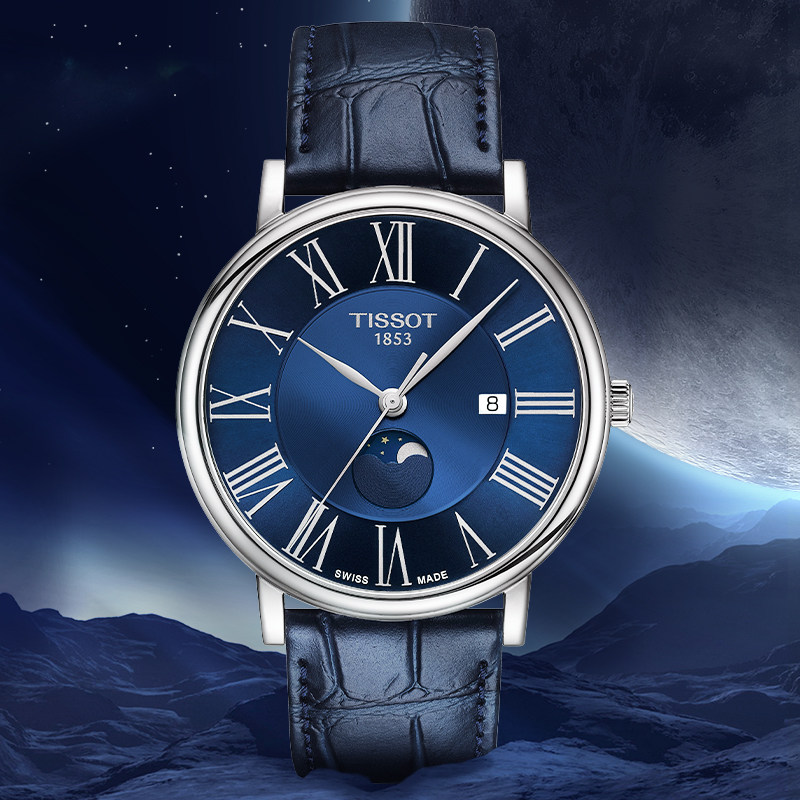 Tissot天梭官方正品 卡森臻我月相蓝盘石英手表男表