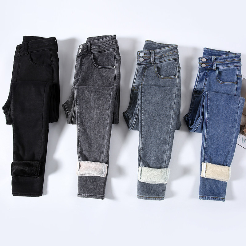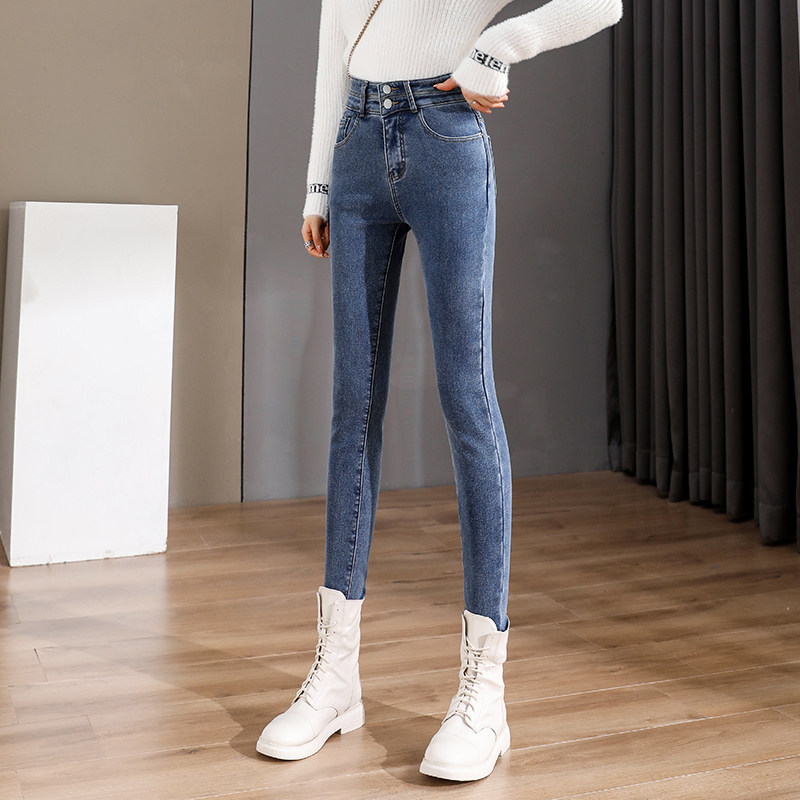 显瘦显高设计感小众小脚铅笔裤 2025年新款 女秋冬季 加绒加厚牛仔裤