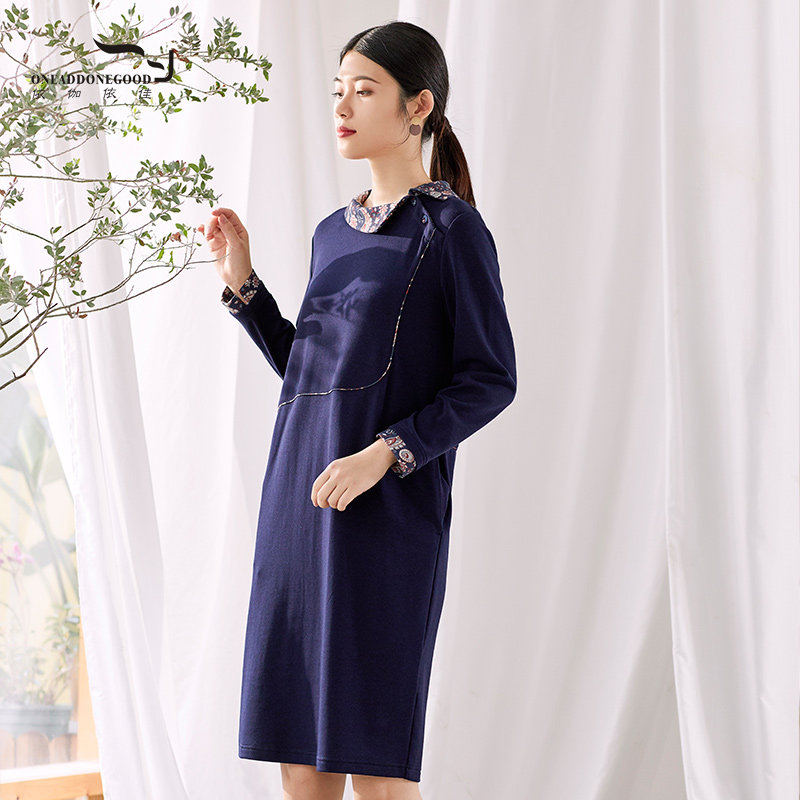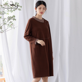 款 依伽依佳2021秋季 连衣裙女YEYQL018秒杀 文艺复古设计感长袖 新款
