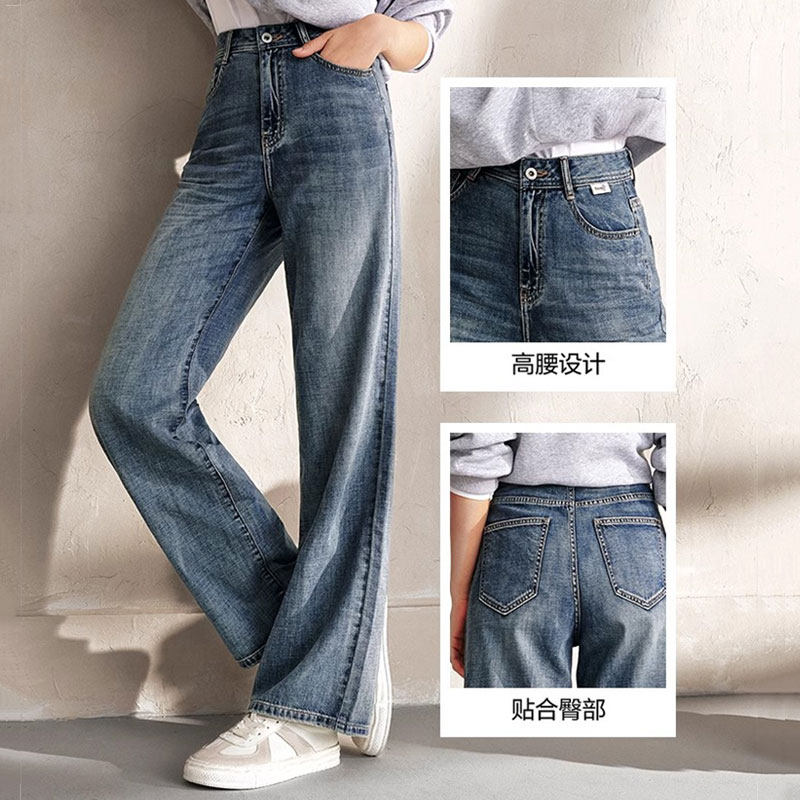 子 松弛感复古直筒显瘦拖地裤 橘子树在哪儿丹宁风微喇牛仔裤 女秋季