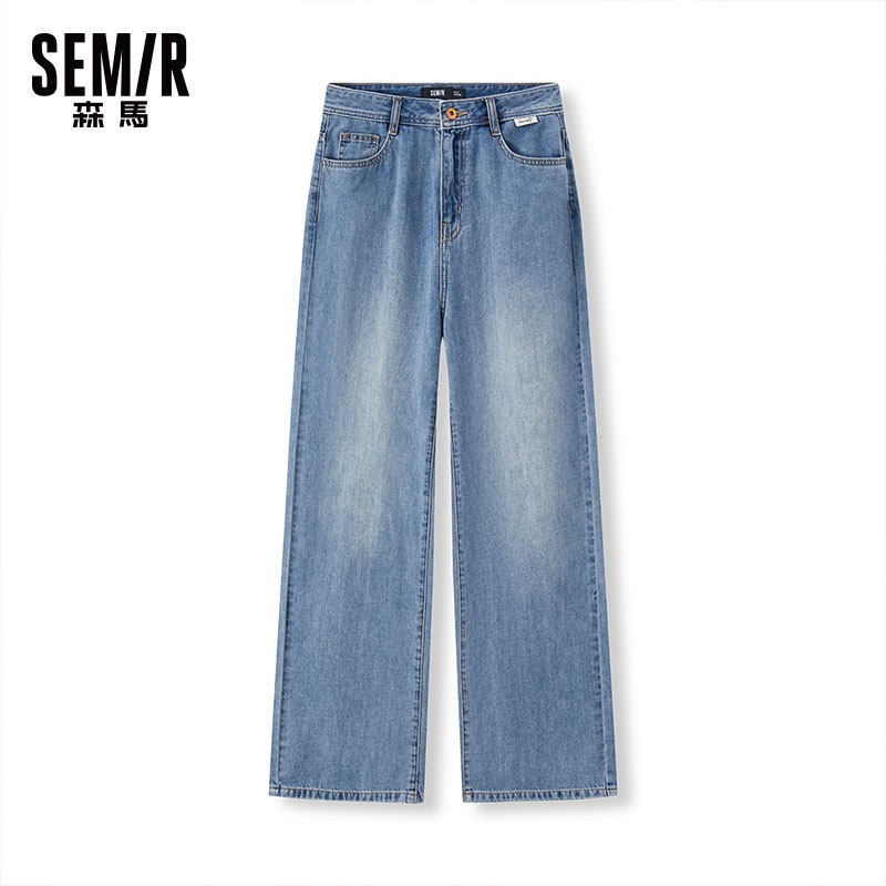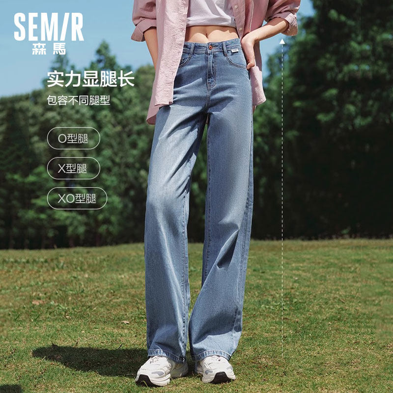 显瘦拖地裤 MENGJIAN浅蓝色直筒牛仔长裤 高腰阔腿裤 新款 子 女26春季