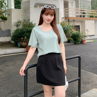 半身裙大码 醋酸a字200斤高腰裙 胖mm显瘦遮肚一步短裙黑色百搭薄款