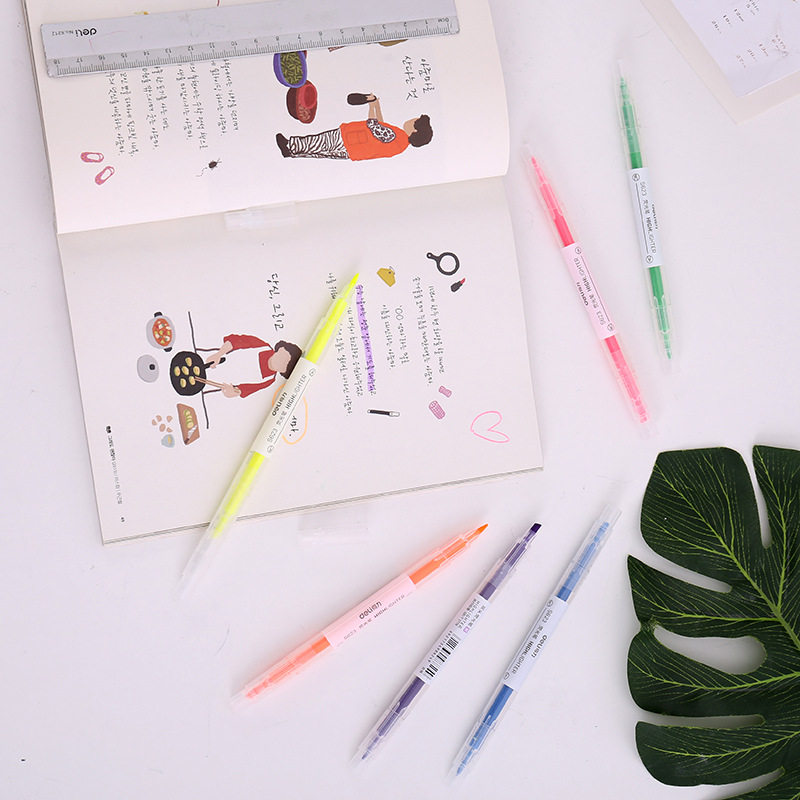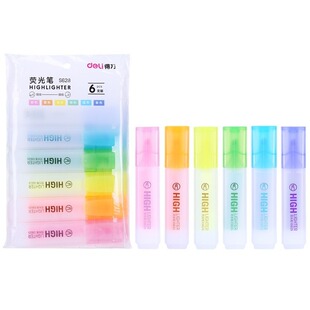 得力文具荧光笔创意学生划重点手账记号笔透明双头标记笔6支装
