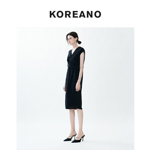 LW3679 黑色交叉不对称V领连衣裙 ¥3590 专柜同款 柯利亚诺夏季