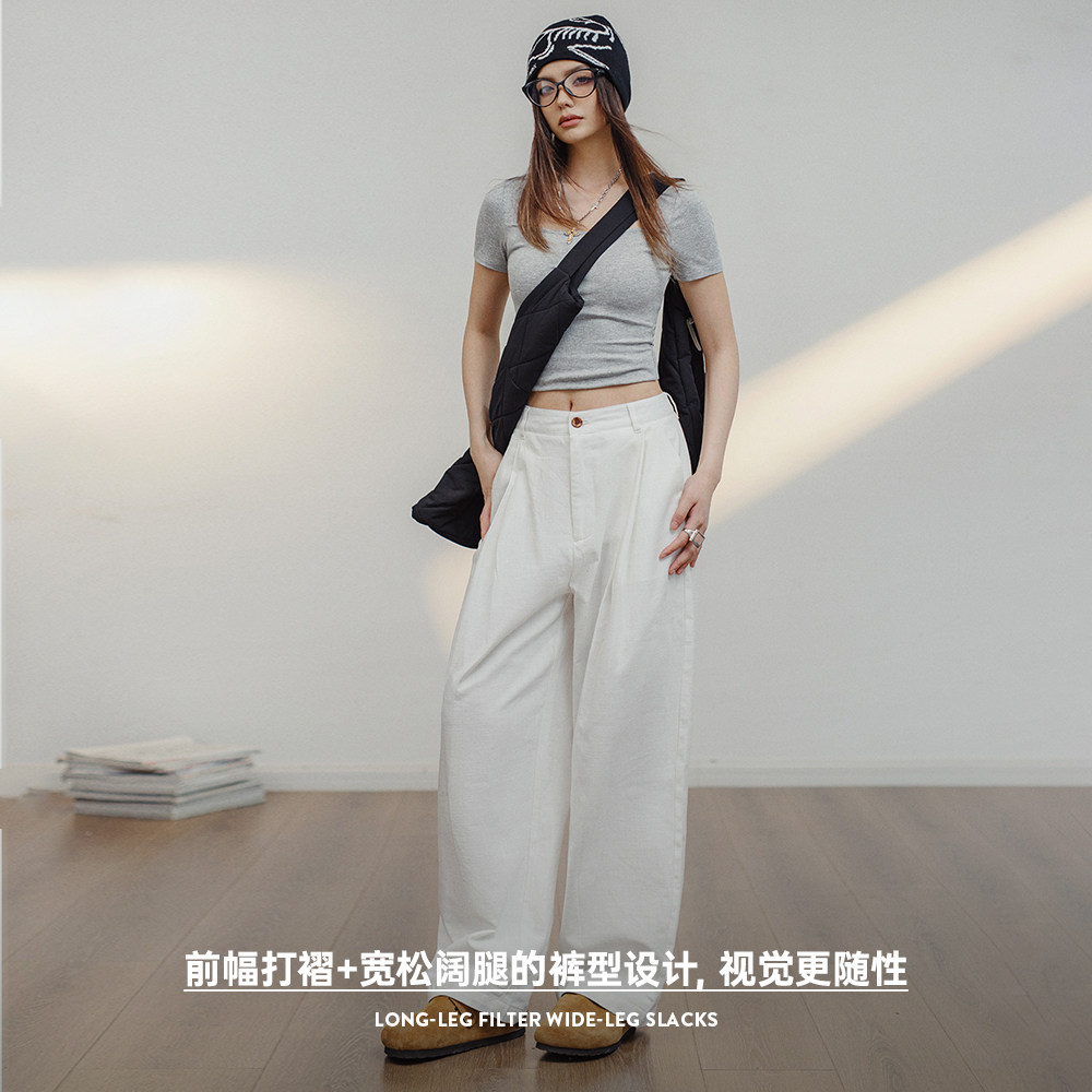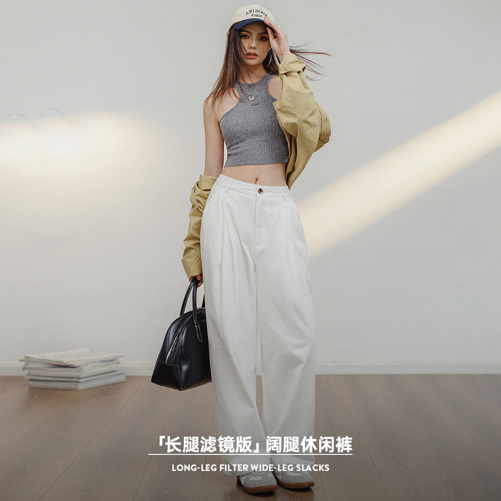 裤 纯棉宽松直筒工装 日系大码 通勤阔腿裤 女 马登美式 春季 白色休闲裤