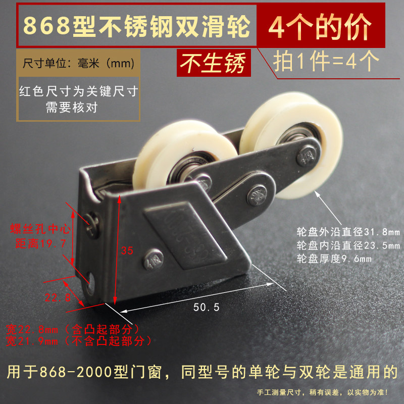 304不锈钢塑钢门窗滑轮玻璃门移门推拉窗户轨道滚轮平轮轮子下面