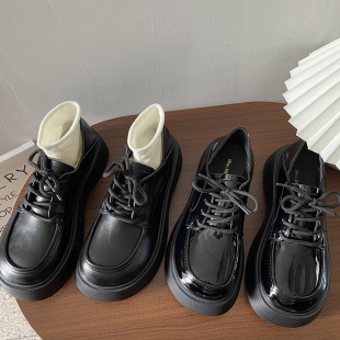 女 圆头百搭松糕厚底增高两穿英伦风JK小皮鞋 系带乐福鞋 女踩跟单鞋