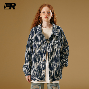 外套 复古情侣装 ER满印提花牛仔夹克男2026秋季 潮牌重工美式