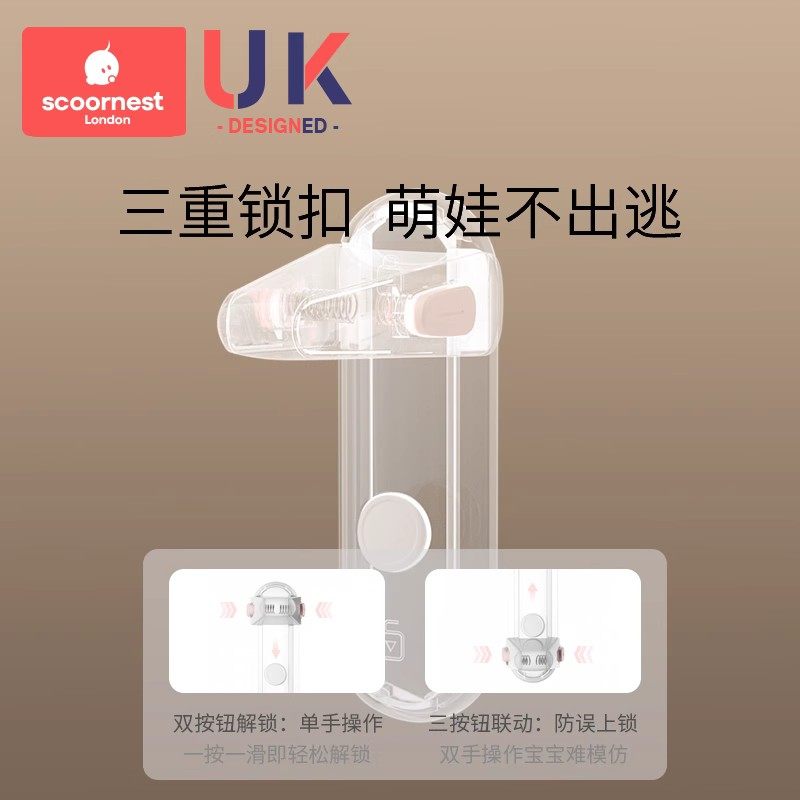 科巢儿童安全锁宝宝防开门神器免打孔门锁扣防盗门防小孩开门