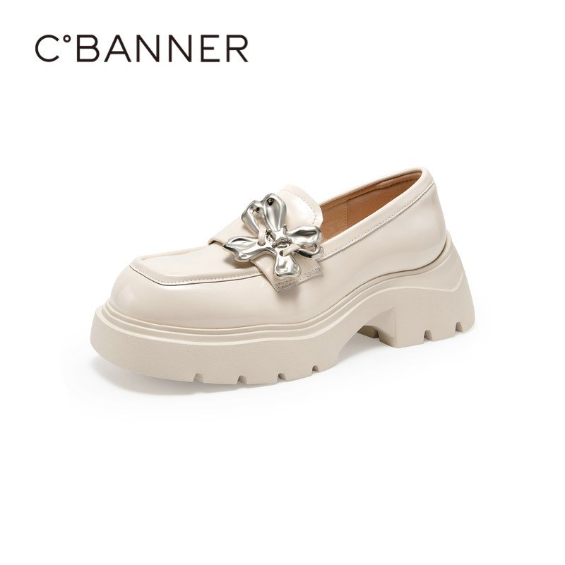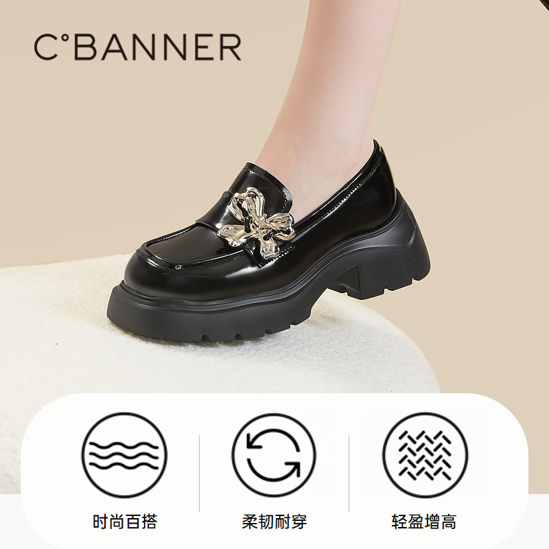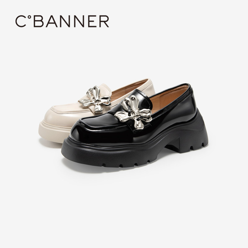 英伦风漆皮小皮鞋 秋季 一脚蹬 女新款 千百度蝴蝶结厚底乐福鞋