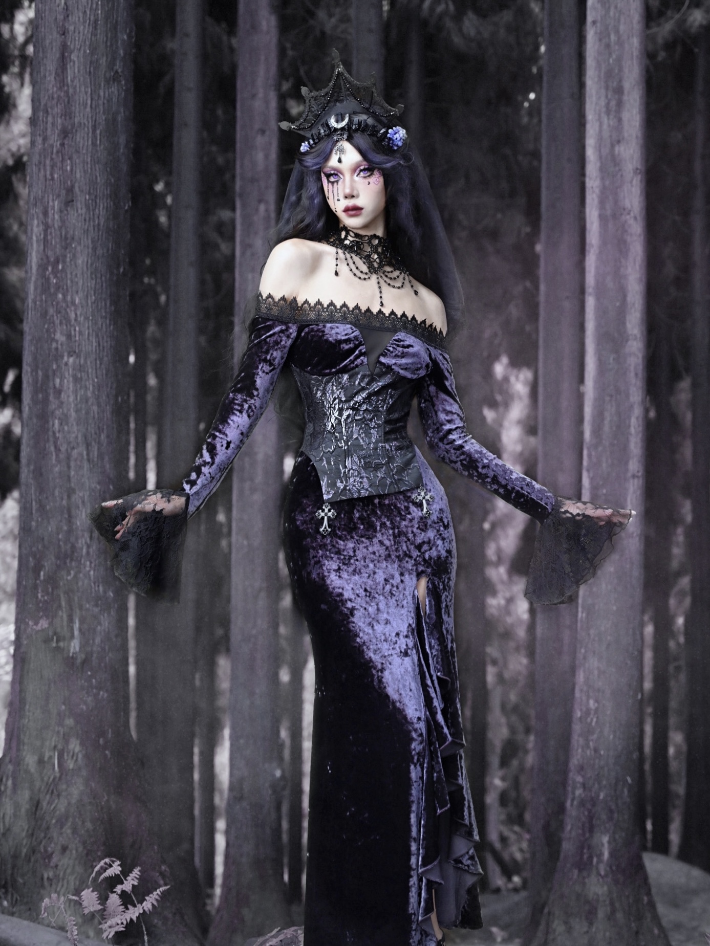 鱼尾裙长袖 哥特一字领修身 连衣裙万圣节 月神祭礼 血液供给原创