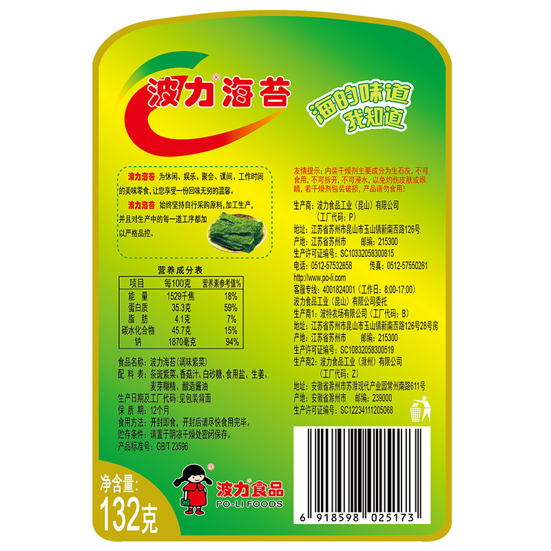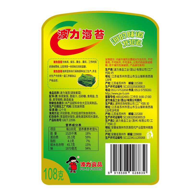寿司批发即食小吃零食条斑紫菜 罐装 波力海苔132g 108g原味桶装