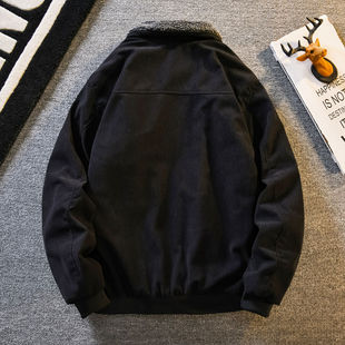 黑色休闲百搭连帽夹克上衣 胖mm双面穿毛绒棉服外套女冬季 大码 女装