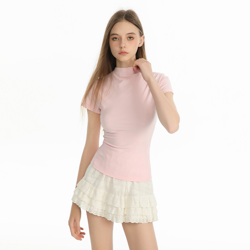 T恤女春夏新款 King 收腰短袖 舒适百搭小高领修身 Prince粉色美式