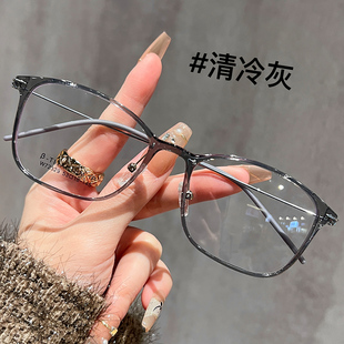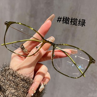 超轻5g钛架冷茶色眼镜近视女可配有度数素颜显白方框方圆脸眼睛架