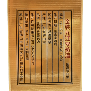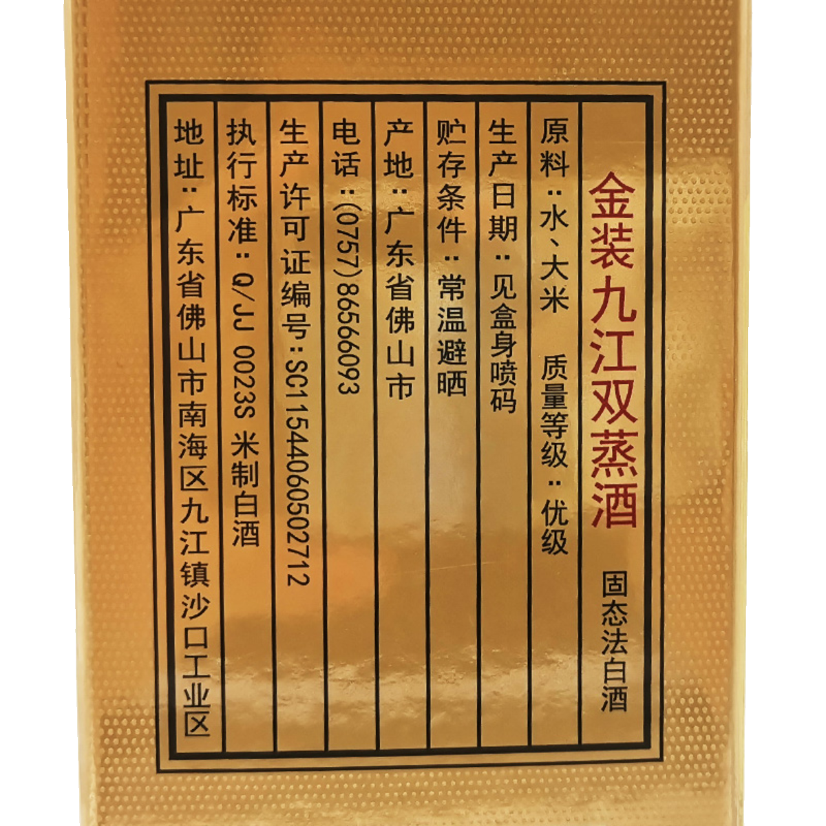 九江双蒸金装 广东名酒纯粮酿造 固态法白酒30度米制白酒500ml