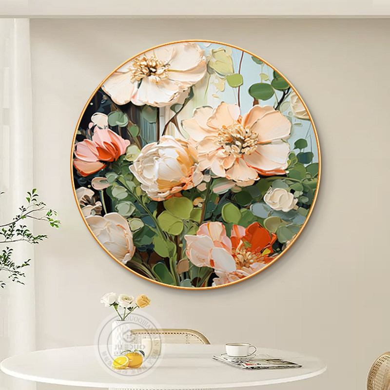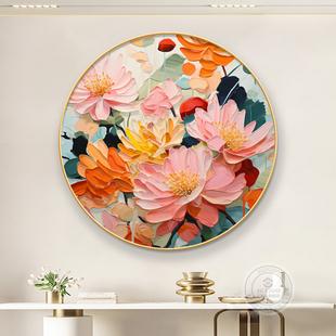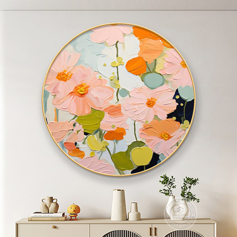 大芬村油画入户玄关装 饰画餐厅抽象肌理感花卉挂画客厅高级感壁画