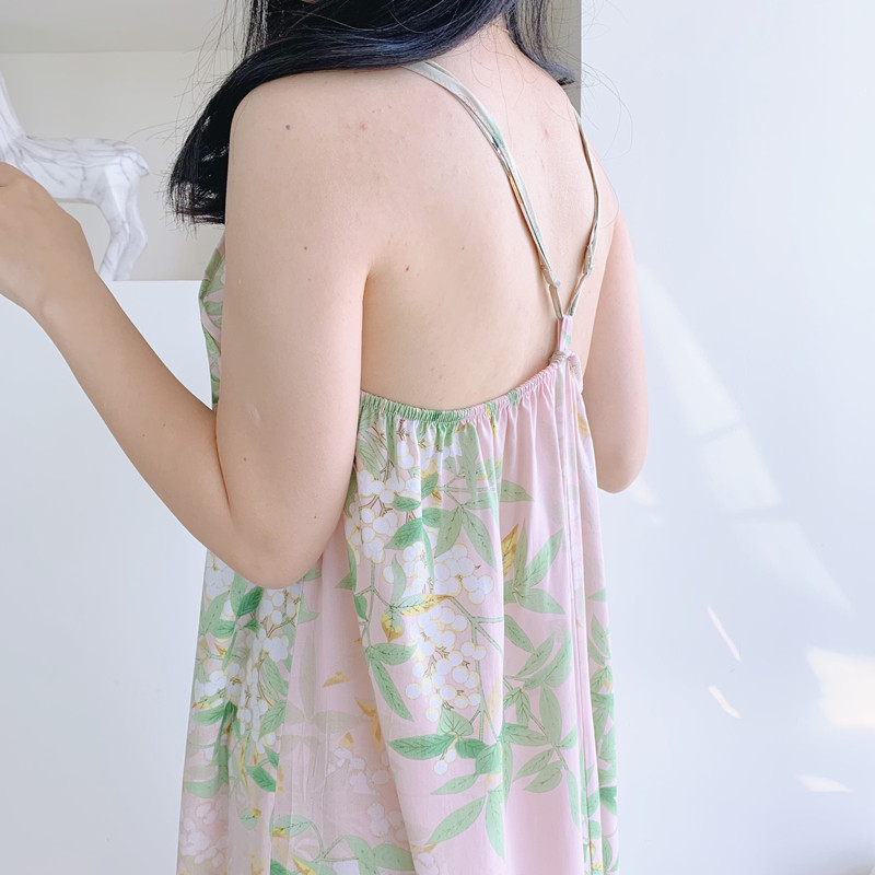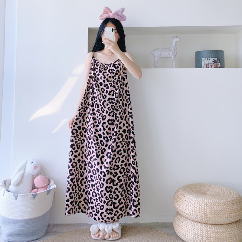 超长宽松胖mm200斤睡衣连衣裙 吊带绵绸睡裙夏薄款 加大码 加长无袖
