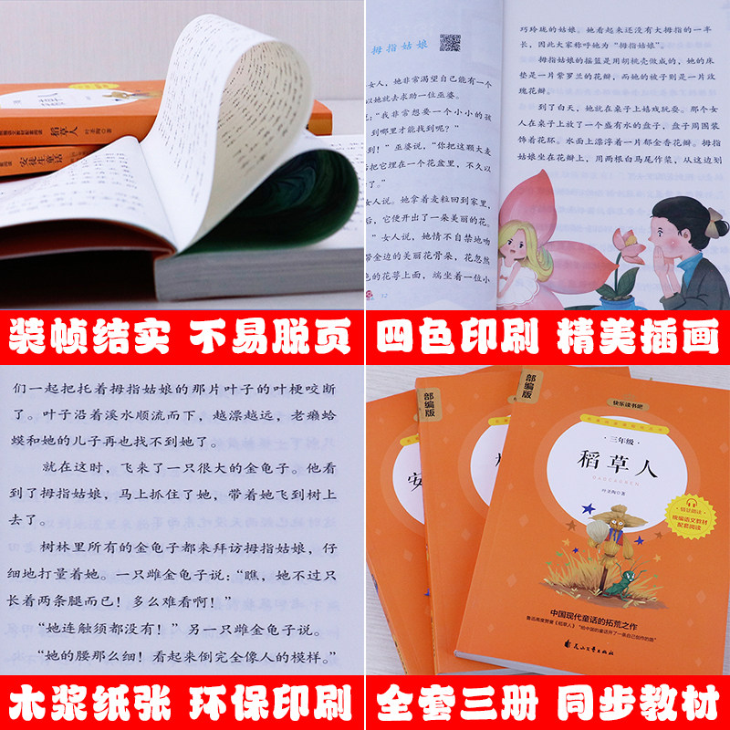 全3册 语文教材扫码 安徒生童话 稻草人同步人教版 有声伴读赠送阅读练习册当当自营图书 格林童话 三年级上册快乐读书吧