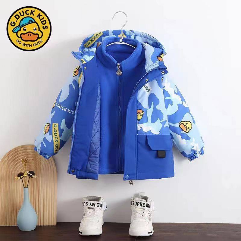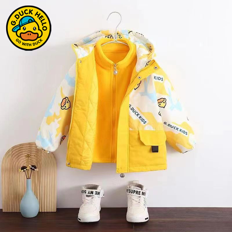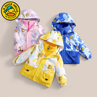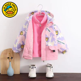 外套三合一男女宝两件套冲锋衣 儿童夹棉薄款 哈罗小黄鸭春秋装 新款