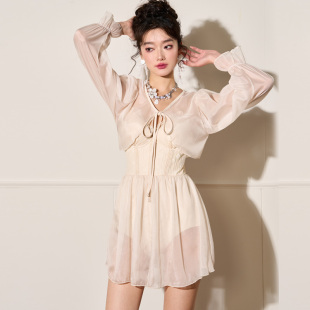 微风假日连体泳衣女带罩衫 钢托聚拢高级感度假泡温泉保守显瘦泳装