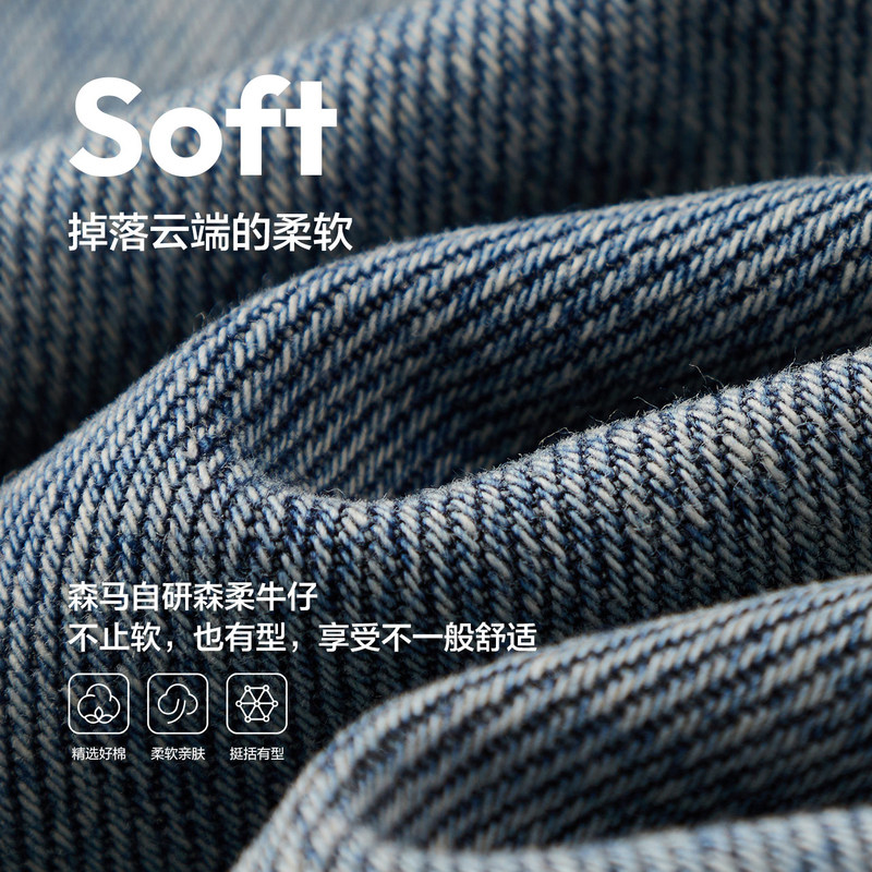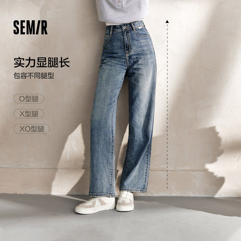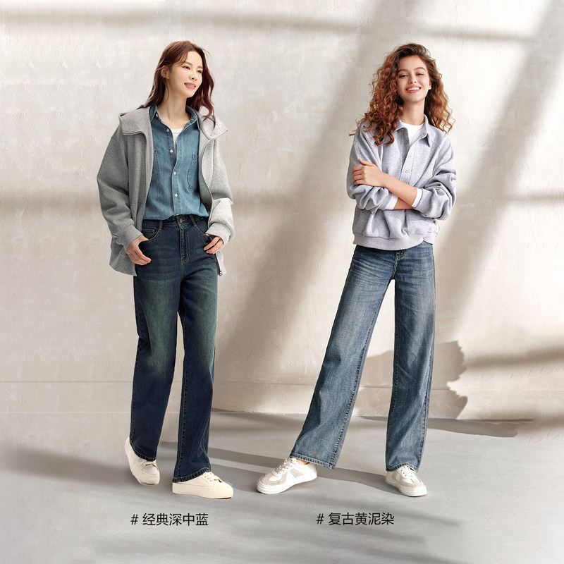 女显高纯棉长裤 森马牛仔裤 秋季 2024新款 港风 遮肉阔腿裤 森柔牛仔