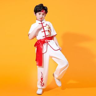 元 旦儿童演出服喜庆中国红新年秧歌服幼儿打鼓团体民族风表演服装
