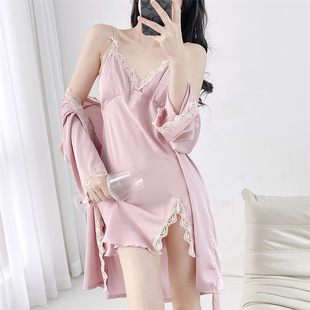 带胸垫家居服 2024新款 睡衣夏季 女性感禁欲系薄冰丝绸吊带睡裙女款