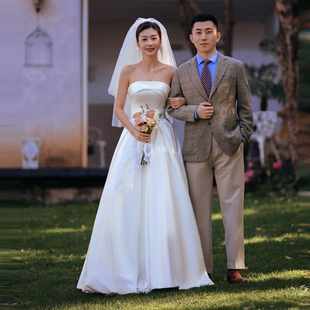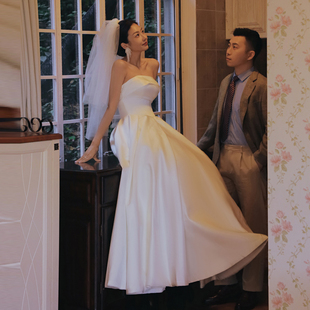 轻纱齐地出门纱抹胸简约大拖尾主纱 主婚纱韩式 婚纱2025新款 新娘