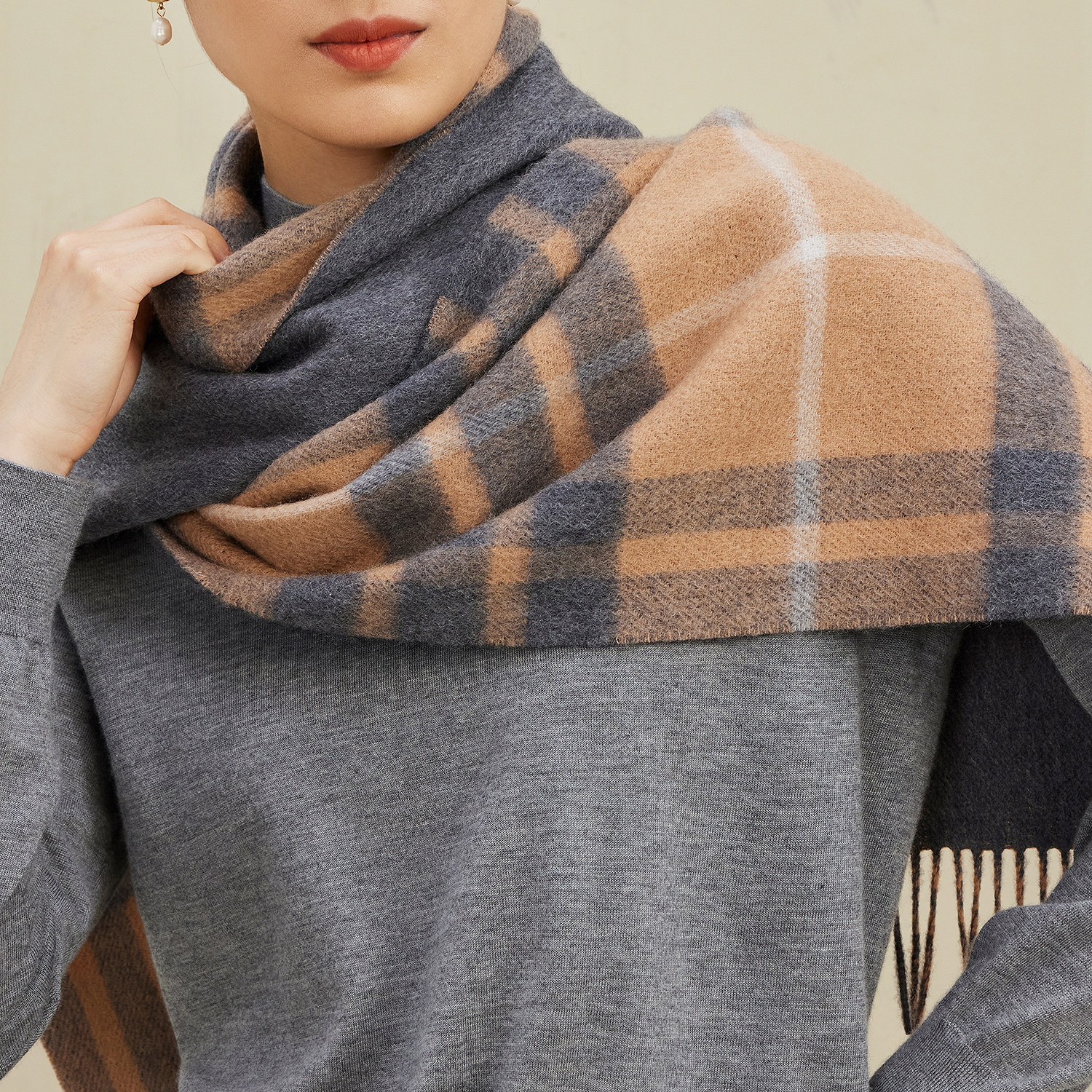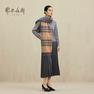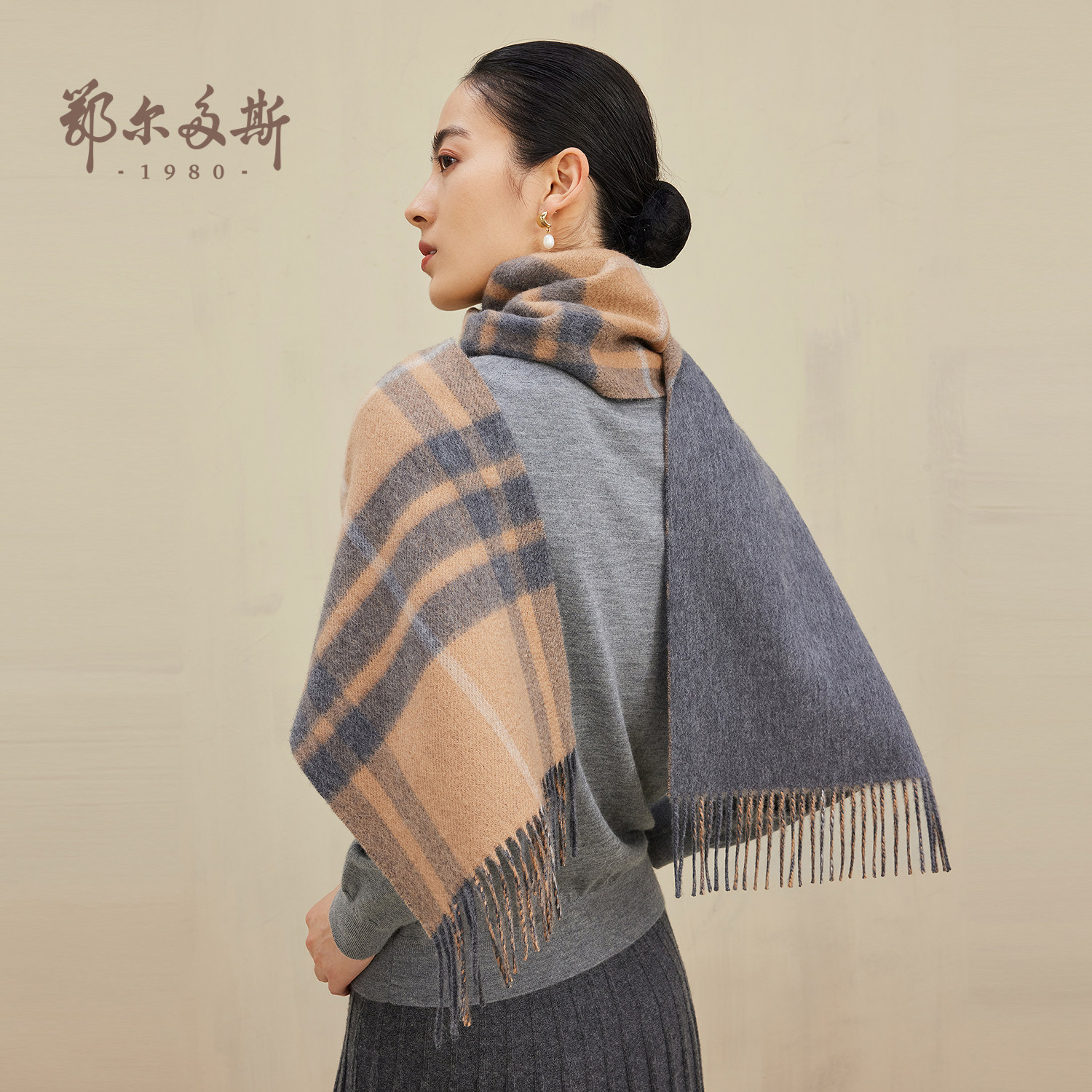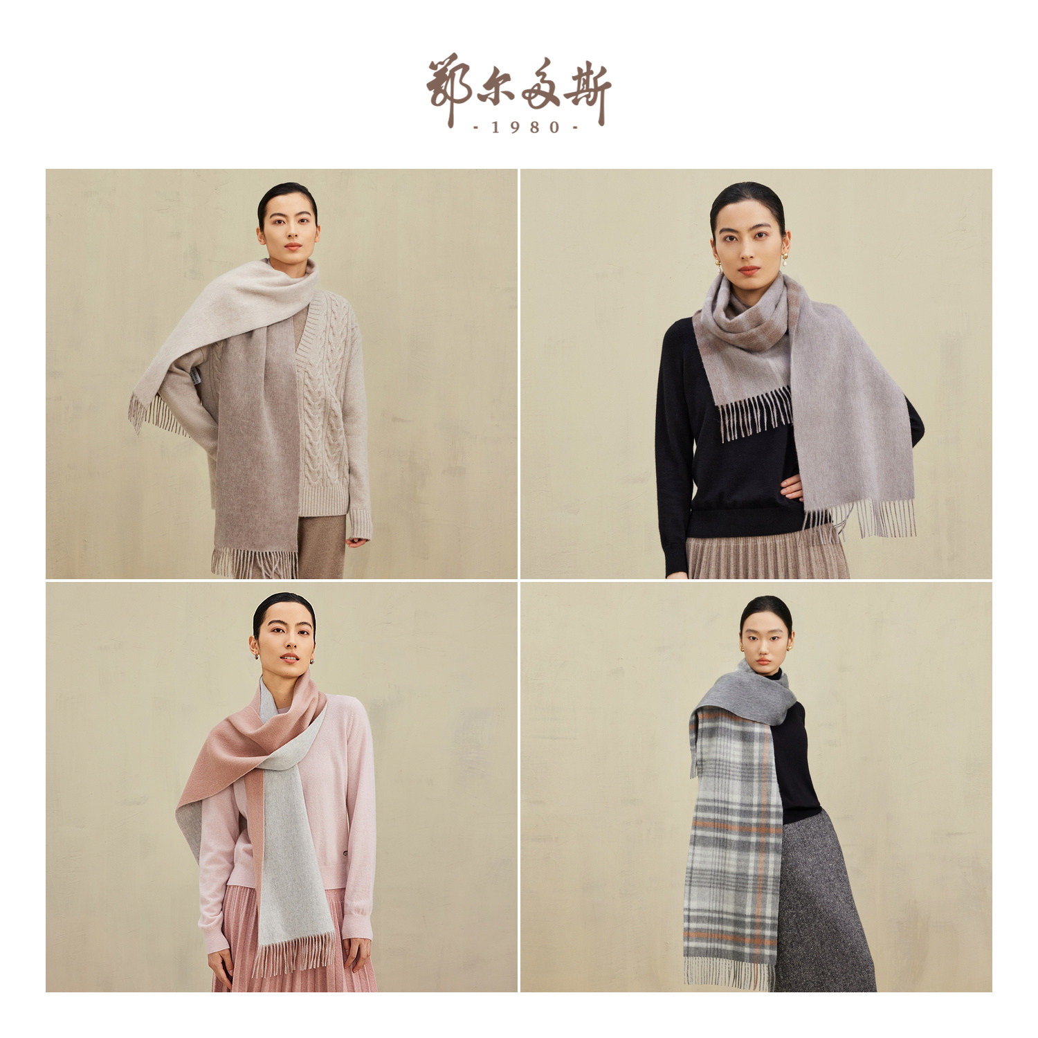 纯羊绒双层围巾冬厚款 鄂尔多斯1980 推荐 水纹围脖 爆款