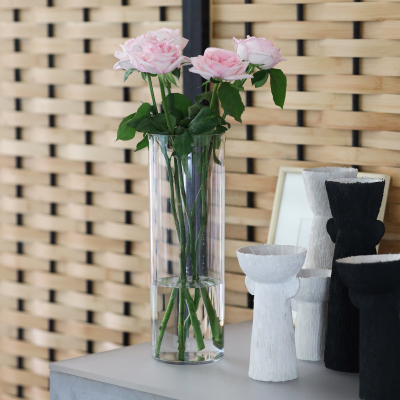 特大号富贵竹玻璃花瓶直筒插花瓶高档大口径干花花瓶客厅装 饰摆件
