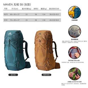 欧洲直邮Gregory格里高利Maven无域58 女士户外登山徒步背包
