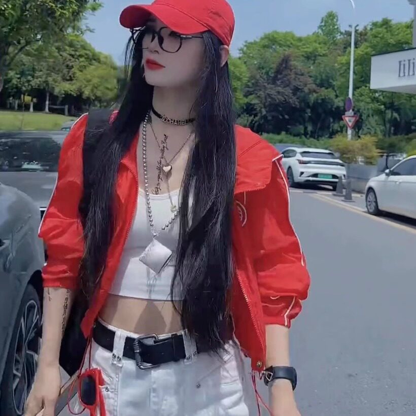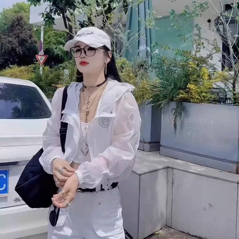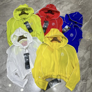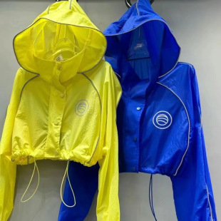 欧货设计酷飒夜光超薄透气连帽黄色防晒衣女减龄超好看防晒短外套