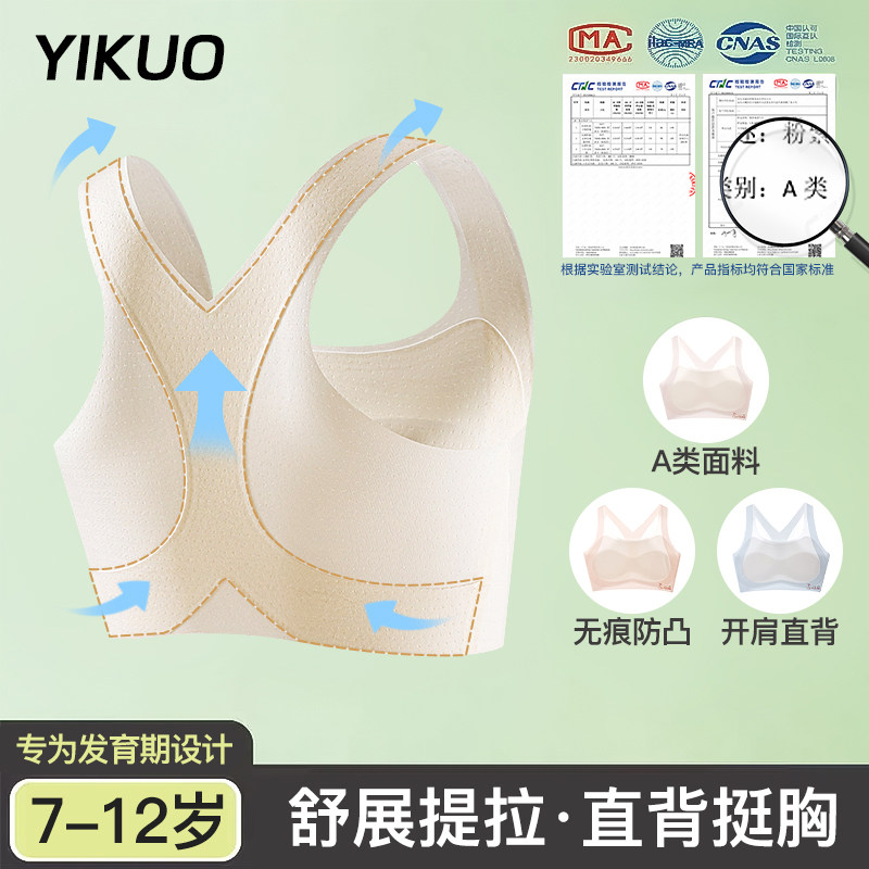 YIKUO忆括女童发育期内衣夏季 小学生一阶段儿童少女运动女孩背心