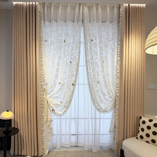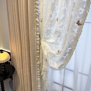 轻奢粉色卧室遮光雪尼尔窗帘定制上门安装 铃兰花语 美式 法式 新款