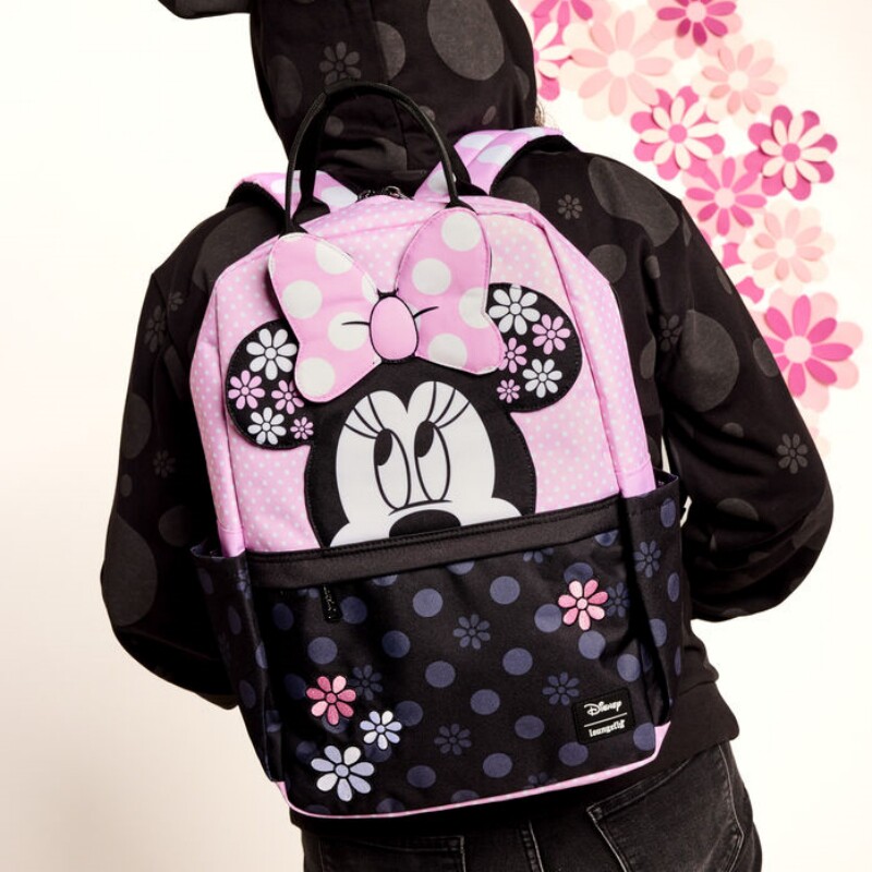 Loungefly迪士尼米老鼠米妮周边书包花卉波点双肩包女全尺寸背包