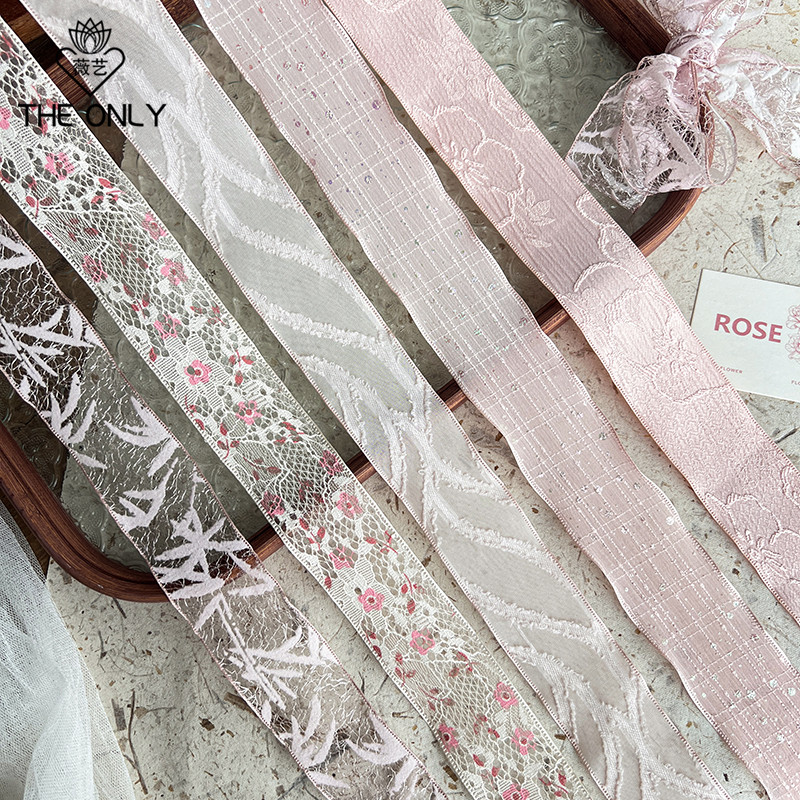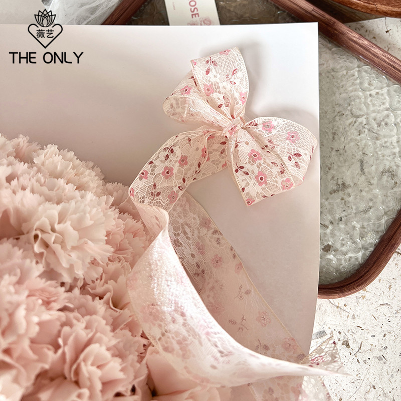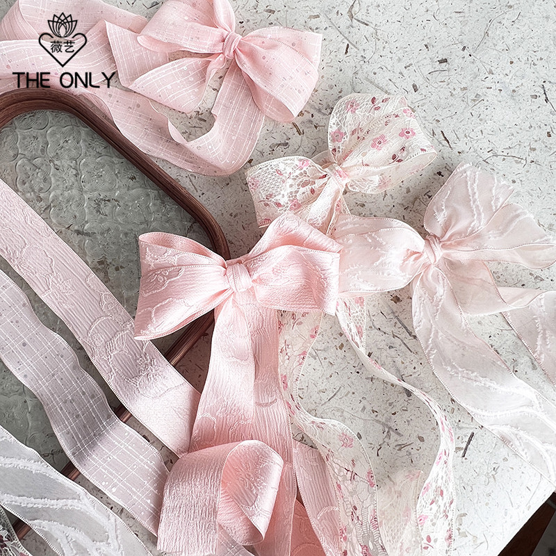 饰辅料diy发饰 礼品缎带鲜花束装 薇艺 柔粉色蝴蝶结丝带花艺包装