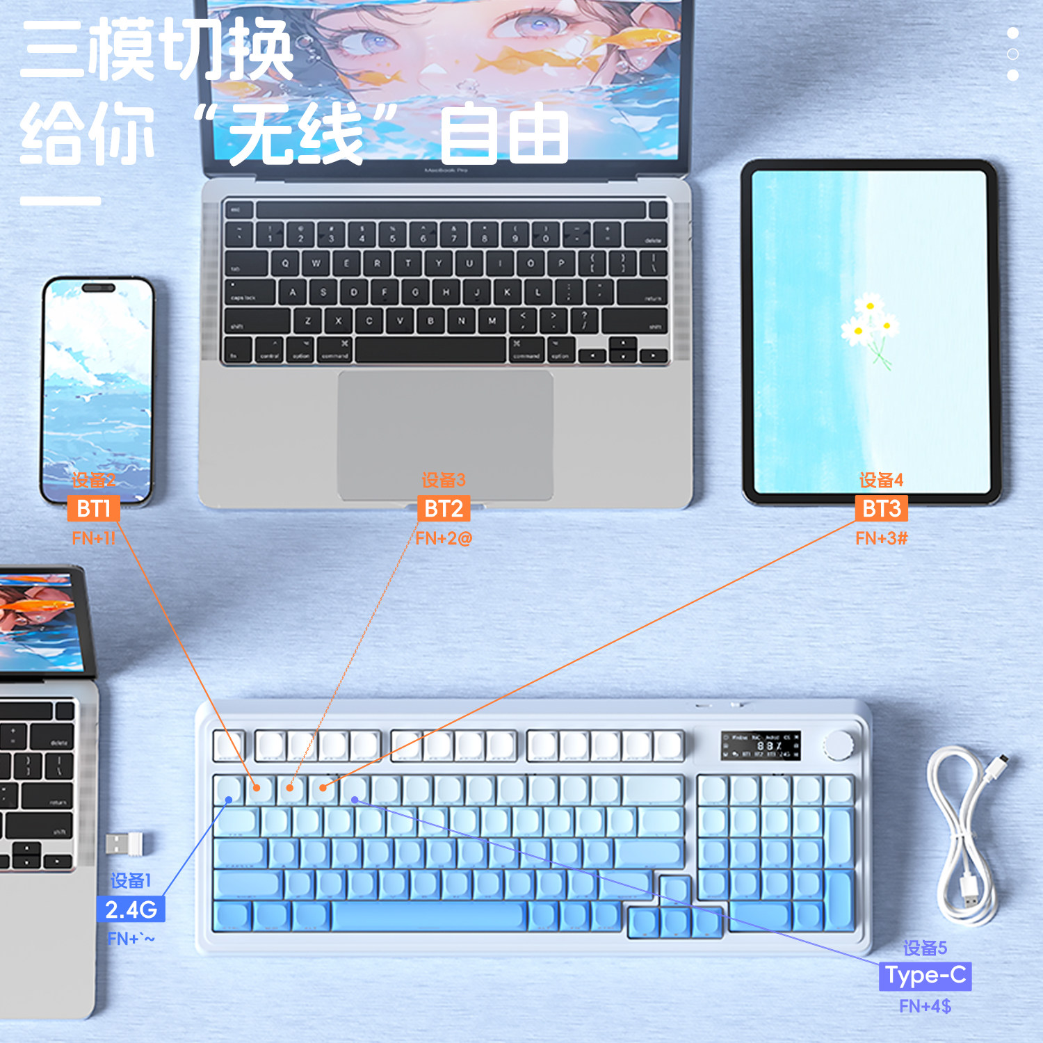 狼蛛S99pro无线蓝牙三模键盘键鼠套装 高颜值办公电脑通用3187键盘