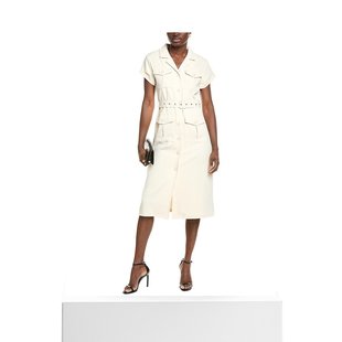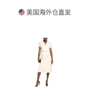 Down Belted Midi 自营 white Button Dress 美国奥莱直 Gracia